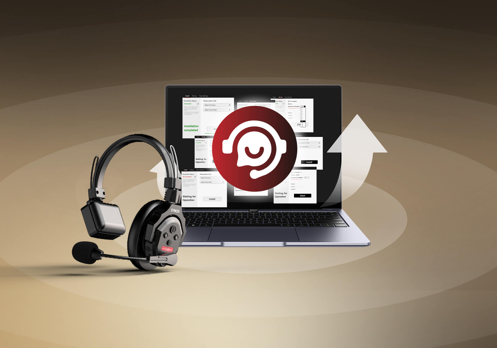 SYNCO EasyGo は、Xtalk ファームウェア更新のプラットフォームとして機能し、Xtalk X、XPro、XMax、Xtalk Link 間の簡単な調整を可能にします。